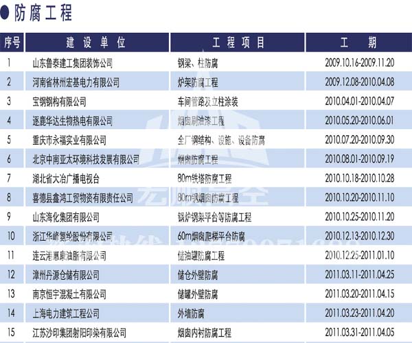 - 宏順建設(shè)核心技術(shù) 宏順建設(shè)專業(yè)防腐各種水塔防腐,儲(chǔ)油罐防腐,管道防腐,吊機(jī)防腐,龍門(mén)吊防腐,水泥筒倉(cāng)防腐工程,有多年的成功經(jīng)驗(yàn),施工業(yè)績(jī)遍布全國(guó)各地... 了解詳情